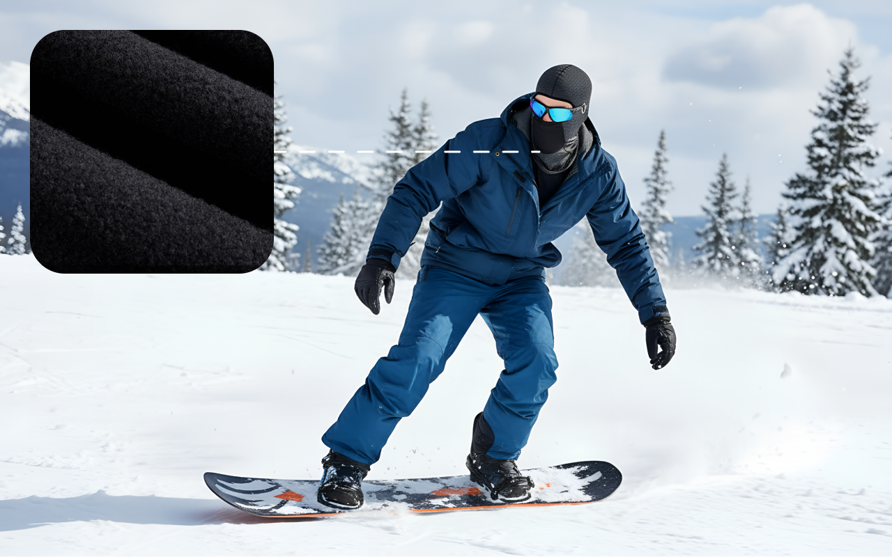 Kationisches Fleece bildet eine starke Barriere gegen heftige Windböen. Ihre Haut bleibt geschützt und frei von Unannehmlichkeiten.