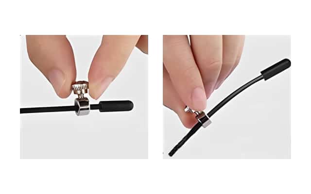 Unser einzigartiges Verstellsystem ermöglicht es Ihnen, kleine Größenänderungen ohne Werkzeug vorzunehmen. Lösen Sie einfach die Klemme und passen Sie die Länge des Springseils im Handumdrehen an. Dadurch kann das Seil bei Bedarf problemlos ausgetauscht werden.