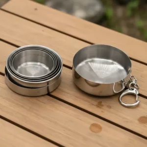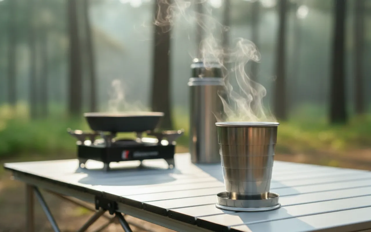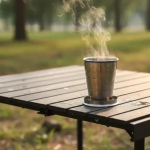 Liebe diese Stahltasse für Campingausflüge. Sie eignet sich perfekt für heiße und kalte Getränke und ich muss mir nie Sorgen um das Gewicht machen.