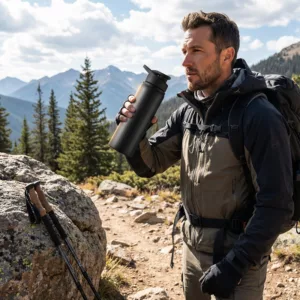 Trage eine Threo-Flasche immer bei dir, um auch an hektischen Tagen hydriert zu bleiben. Sie passt ganz einfach in Rucksäcke – das macht Reisen leichter und angenehmer.