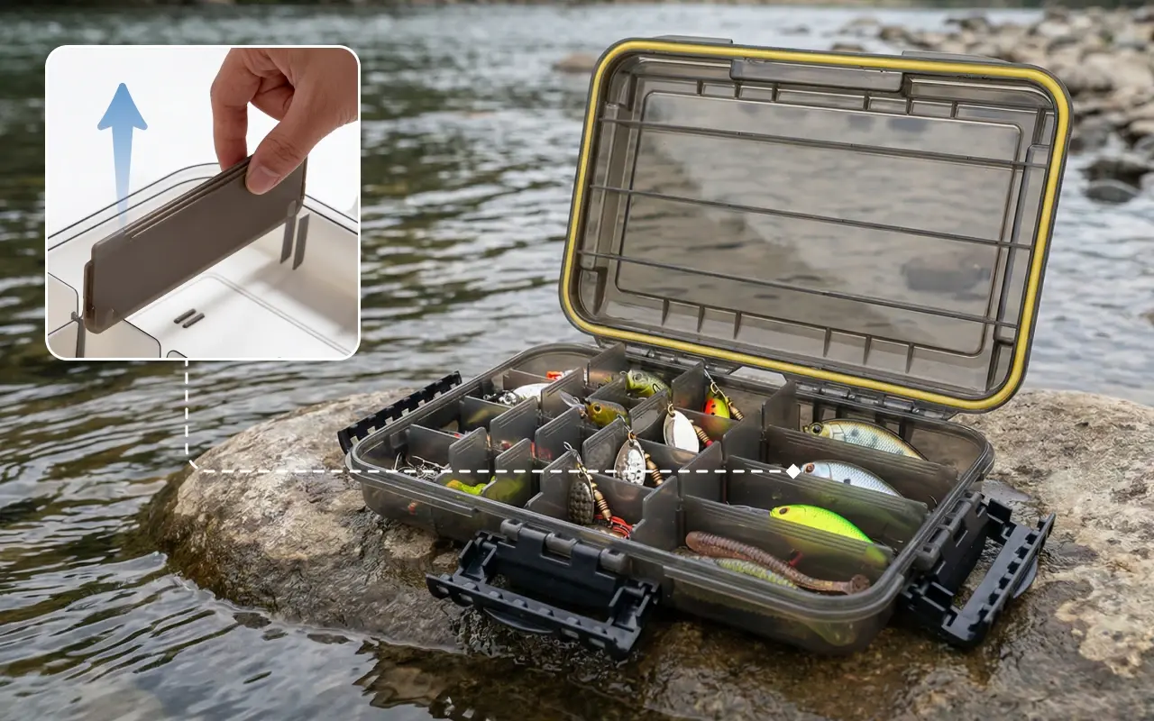 Ich liebe es, wie meine Köder selbst dann trocken bleiben, ich meine Box in den Fluss fallen lasse. Die Verschlüsse sind superfest – nichts geht aus Versehen auf!