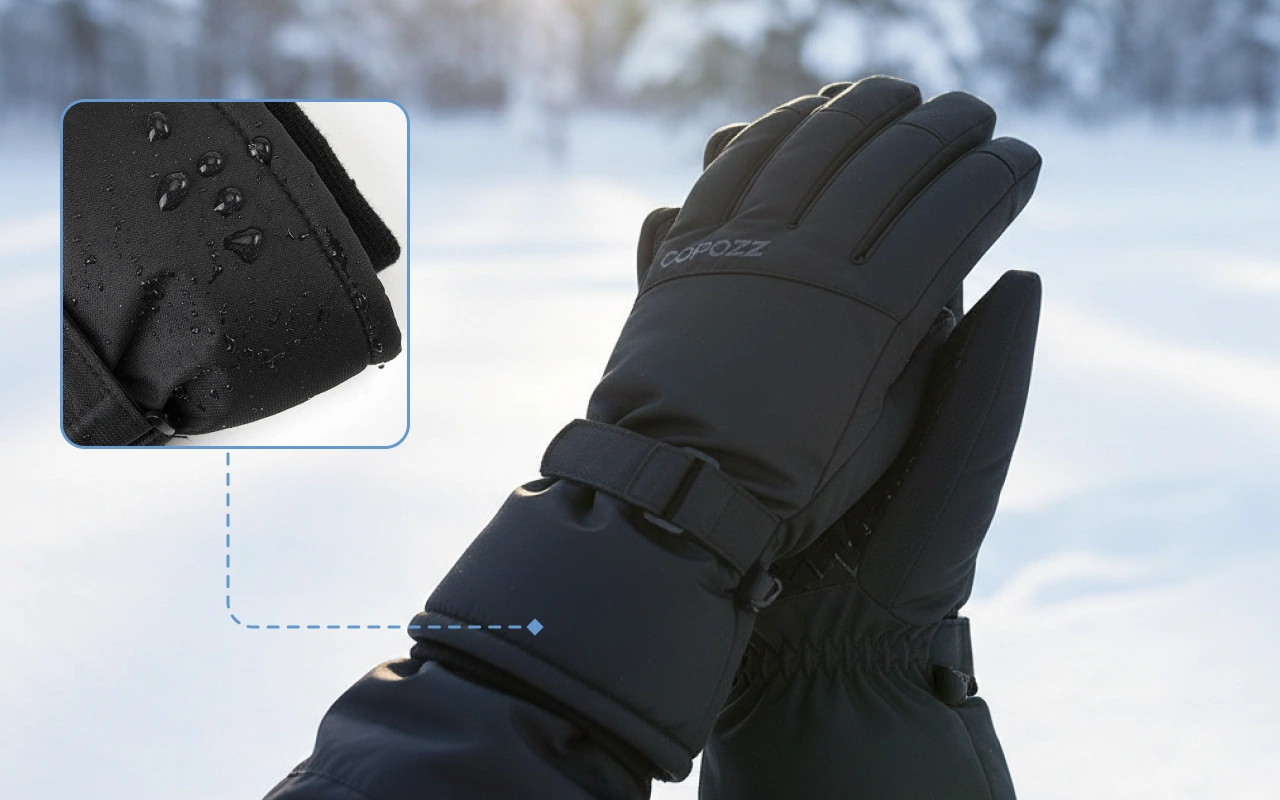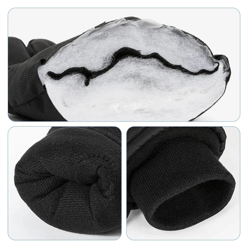 Regen oder Schnee dringen nicht durch die starke Außenhülle. Mehrere Schichten halten die Hände trocken und blockieren eisige Winde.