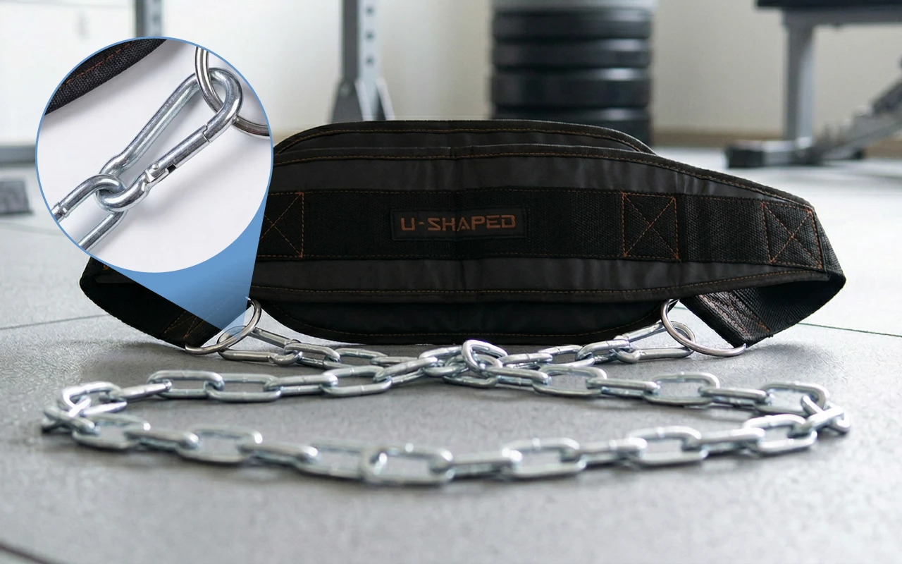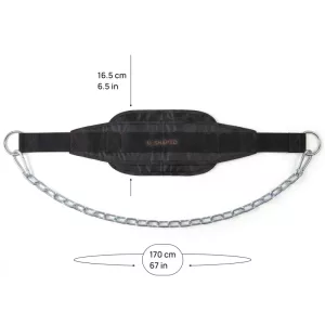 Die Kette ist dick, der Gürtel gepolstert, und keine Nähte stehen heraus. Ich nutze ihn problemlos für Klimmzüge im breiten Griff.