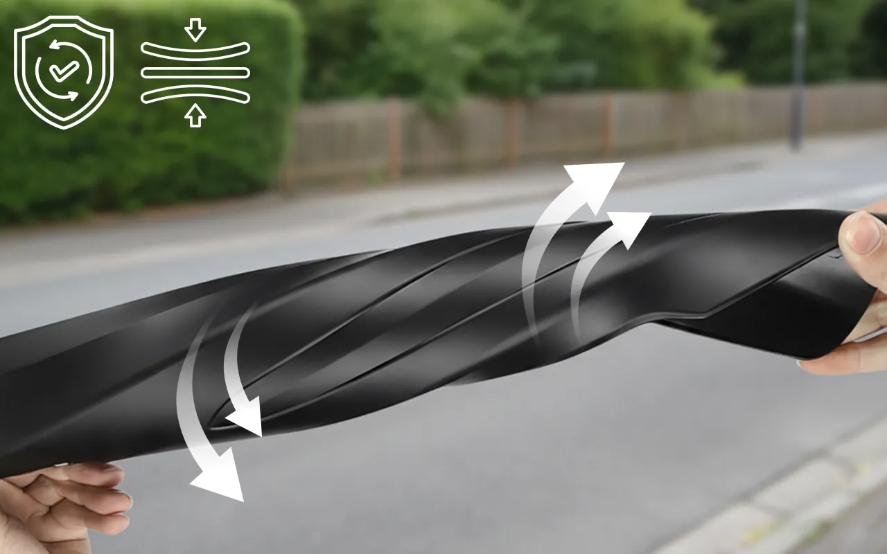 Das strapazierige Material widersteht Kratzern und Rissen auf unebenem Gelände. Es hält häufigem Gebrauch unter harten Bedingungen stand und sorgt so für Schutz über viele Rad-Saisons hinweg.