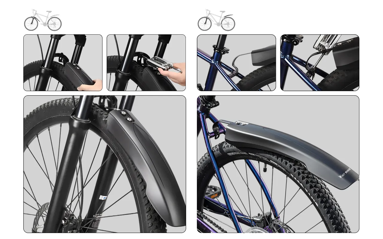 Unsere Schutzbleche sind für eine schnelle Montage konzipiert und benötigen nur wenige Minuten. Sie passen sicher an die meisten Mountainbikes und bleiben während der Fahrt fest an ihrem Platz.