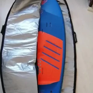 Unsere Tasche ist aus langlebigen Materialien gefertigt, darunter silbernes Polyester, Schaumstoff und Plane. Umwelteinflüsse wie Wasser, Sonne und Sand können deinem Board nichts anhaben. Wenn du es versehentlich fallen lässt, absorbiert die dichte Polsterung den Stoß.