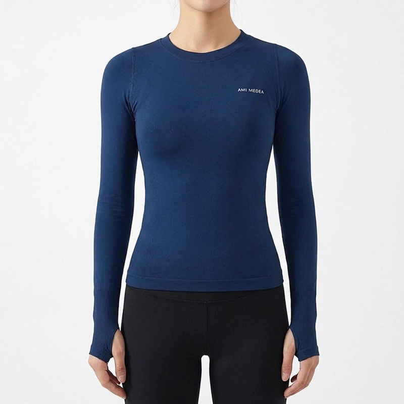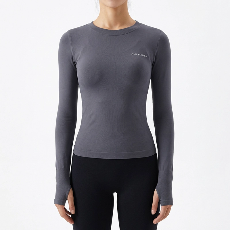 Ich trage dieses sportliche Shirt für morgendliche Läufe und Yoga. Es trocknet schnell, klebt nie am Körper und die langen Ärmel schützen meine Arme vor der Sonne.