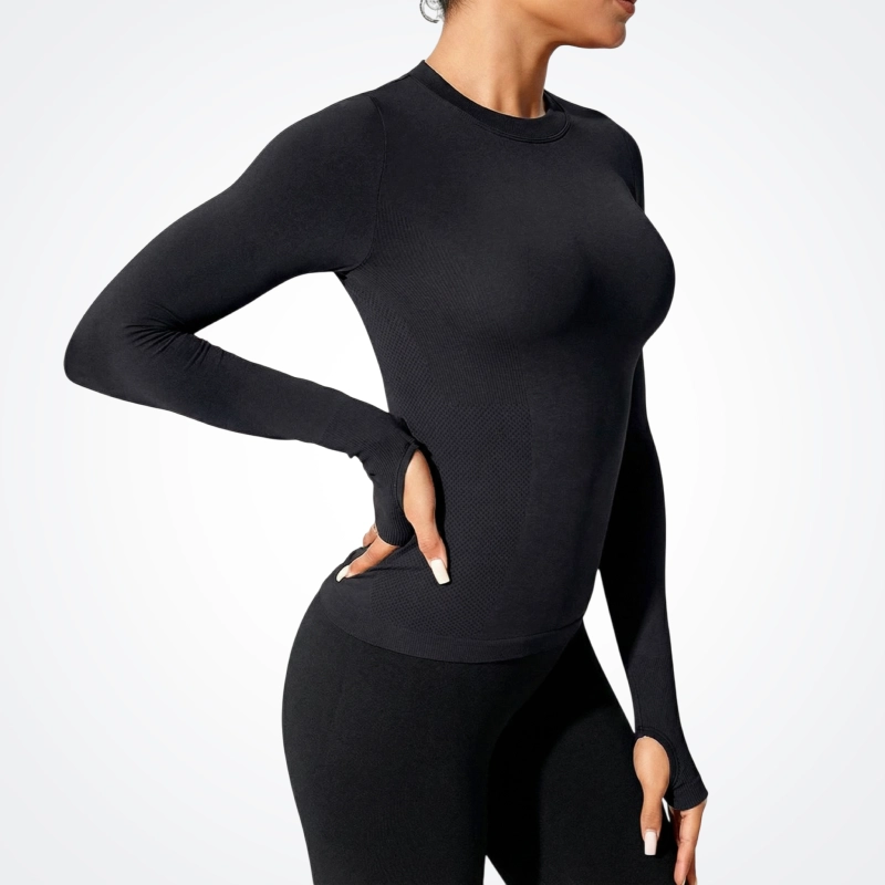 Lange Ärmel schützen die Arme vor Sonne oder rauen Fitnessgeräten. Fühlen Sie sich in jeder Pose oder Bewegung drinnen und draußen sicher und gut bedeckt.