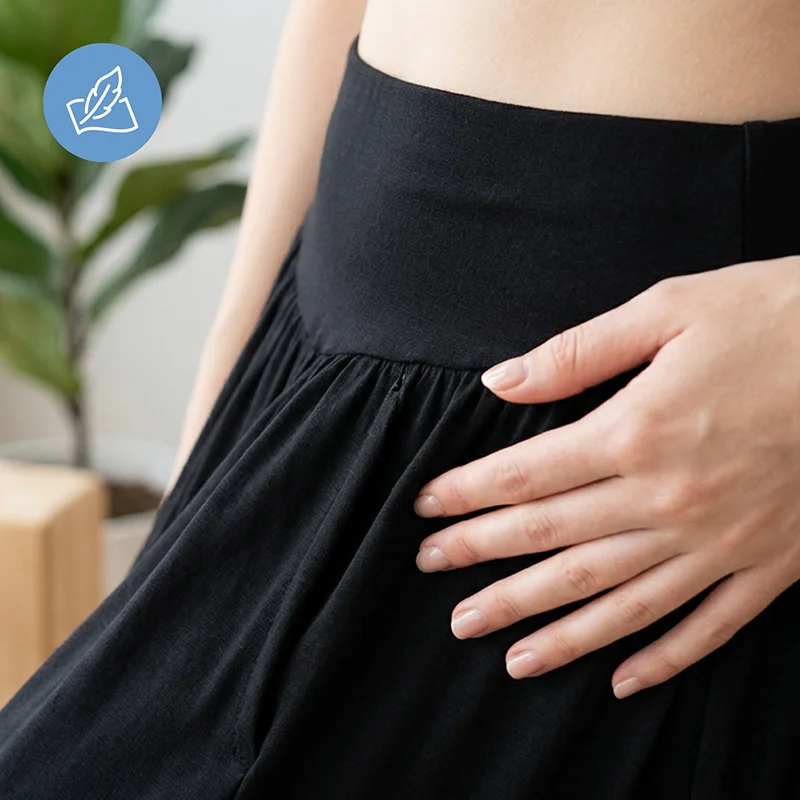 Der elastische Bund passt sich mühelos allen Körperformen an. Bewegen, dehnen oder tanzen Sie frei, ohne Ziehen.