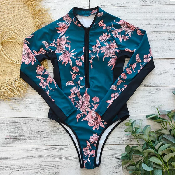 Mit dem Langarm-Badeanzug von THREO bist du für deine Aktivitäten im Wasser bestens gerüstet!Er schützt dich vor Sonnenbrand und zaubert dir eine schmeichelhafte Figur. Es besteht aus ultra-dehnbarem Material für optimale Bewegungsfreiheit im Wasser und ist auch in Bezug auf Körperabdeckung und UV-Schutz funktional. Mit seinem schicken einteiligen Design mit tropischen Drucken ist unser Badeanzug ideal für ein Training am Pool, zum Schwimmen, Surfen oder Tauchen.