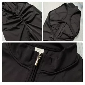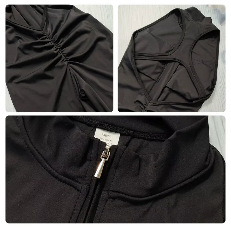 Ich bin in meinen Vierzigern und liebe, wie dieser Jumpsuit meinen Bauch und meine Hüften glättet. Mit dem Reißverschluss kann ich steuern, wie offen die Front ist, und er fühlt sich nie schwer von Schweiß an.
