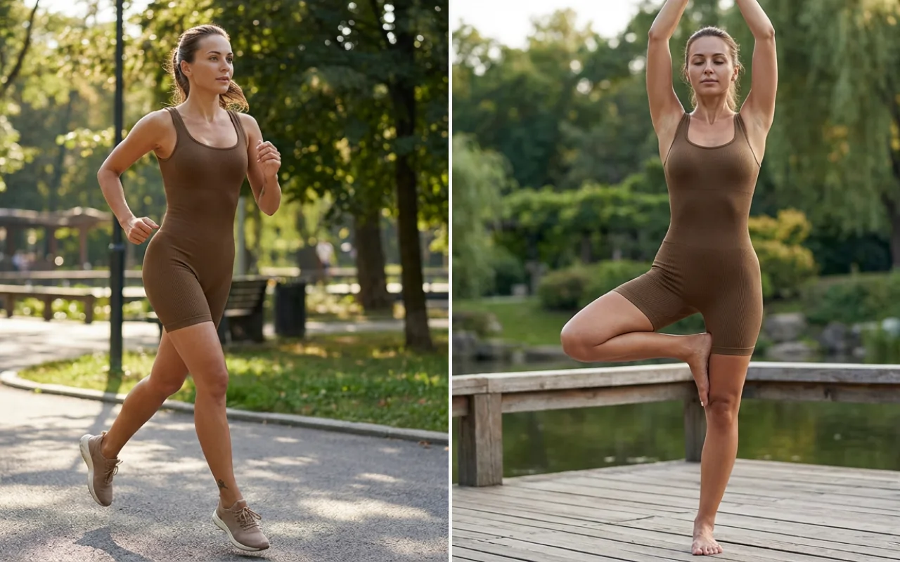 Stylischer, dehnbarer Jumpsuit mit beeindruckender Haltbarkeit für regelmäßiges Training.